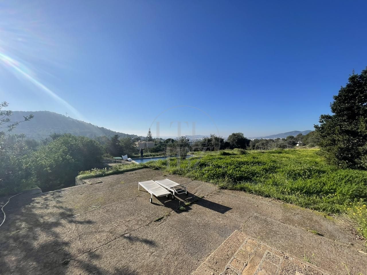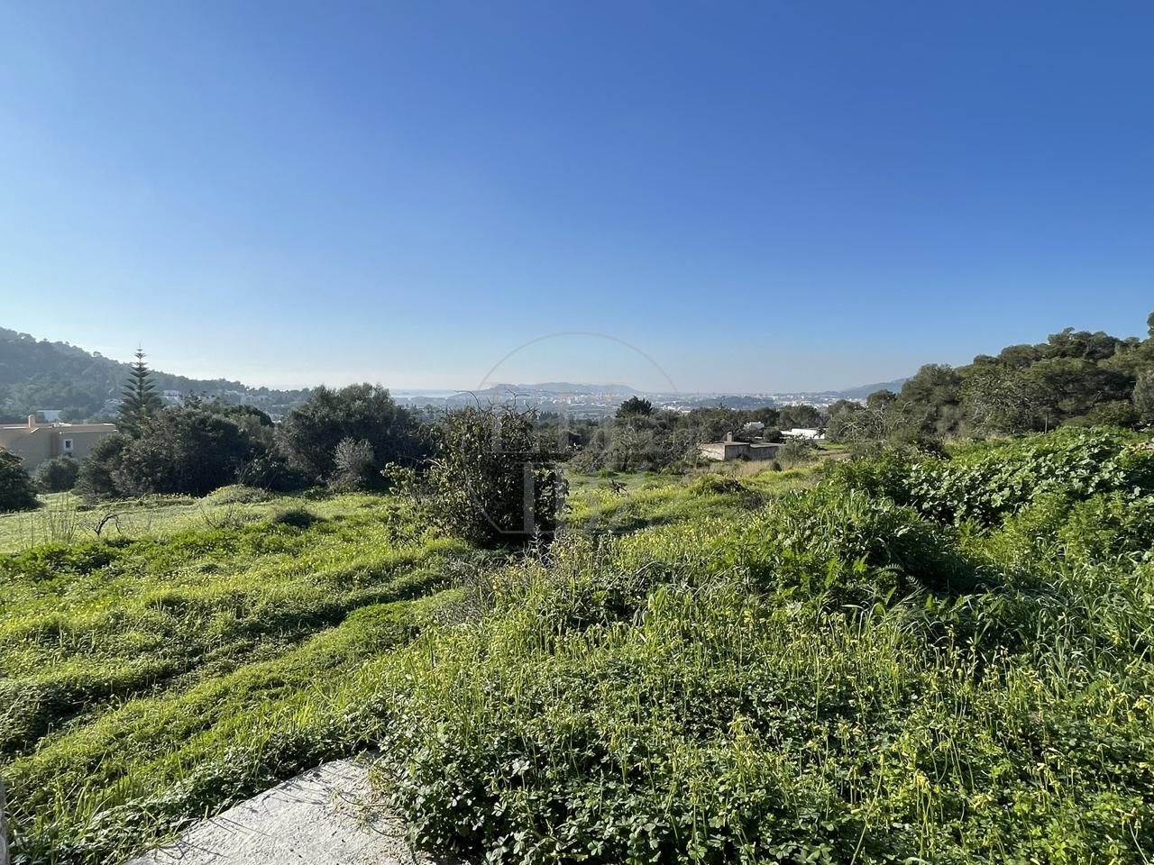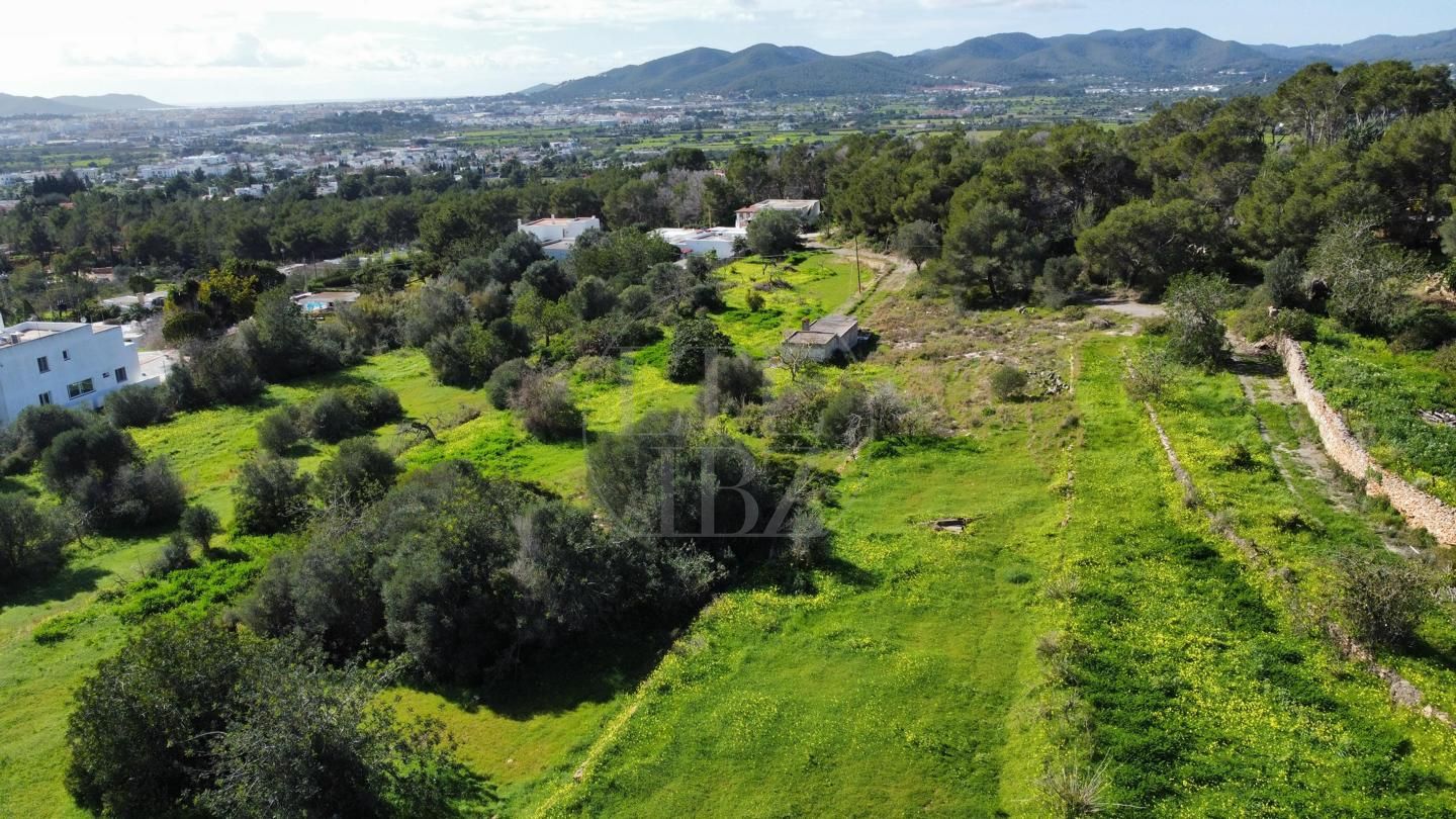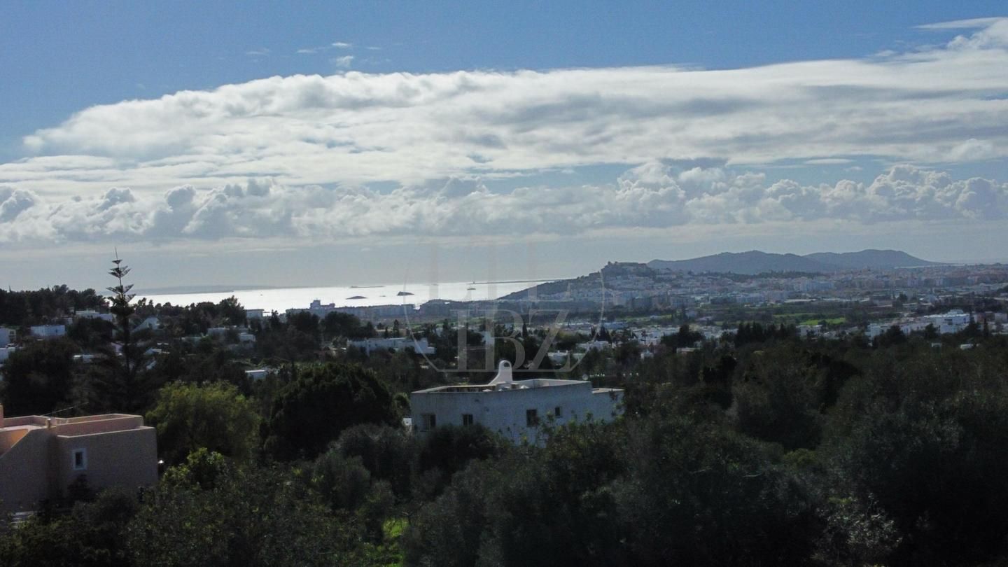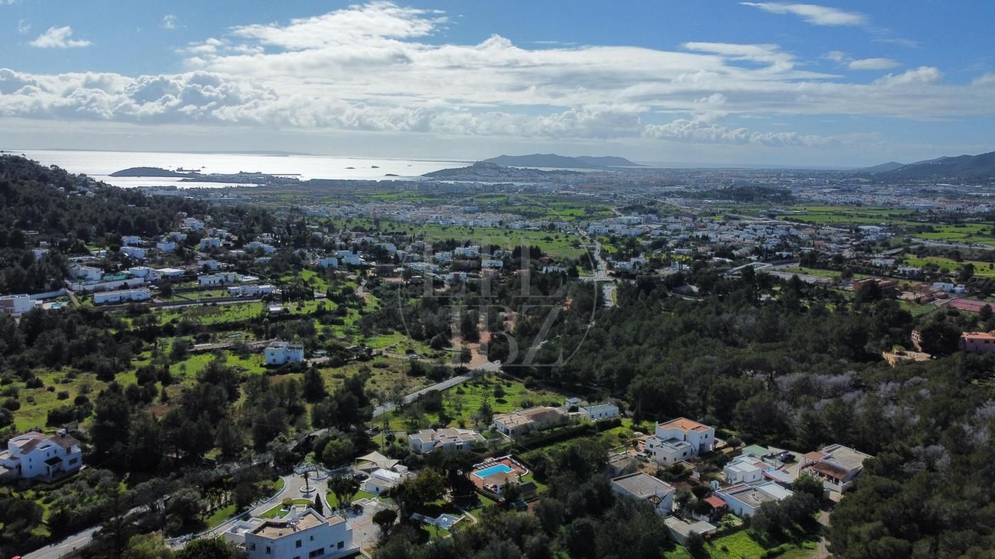 El terreno abarca 22.000 m² de suelo rústico con zonas de bosque, áreas abiertas y diferentes niveles que favorecen la amplitud visual y el aprovechamiento de las vistas. La orientación permite disfrutar de panorámicas despejadas hacia el mar, el casco histórico y Formentera, garantizando una sensación constante de espacio y privacidad.