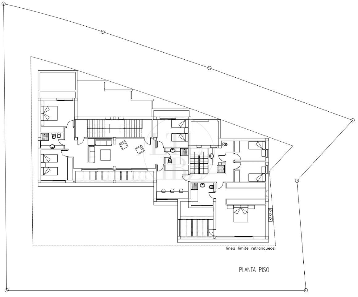 •Planta superior: 214,26 m² con seis dormitorios dobles, dos vestidores, tres baños y una sala de estudio.