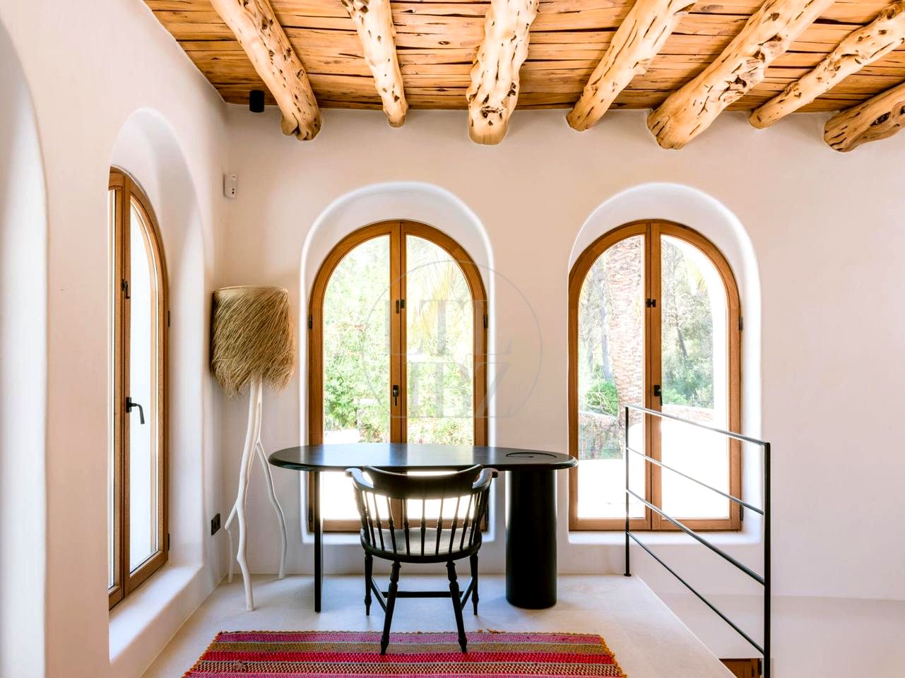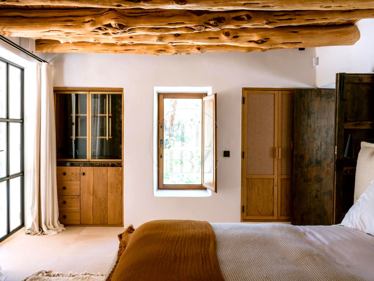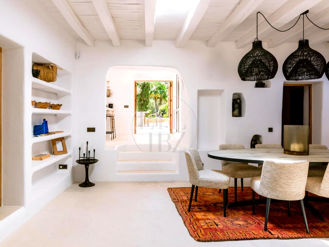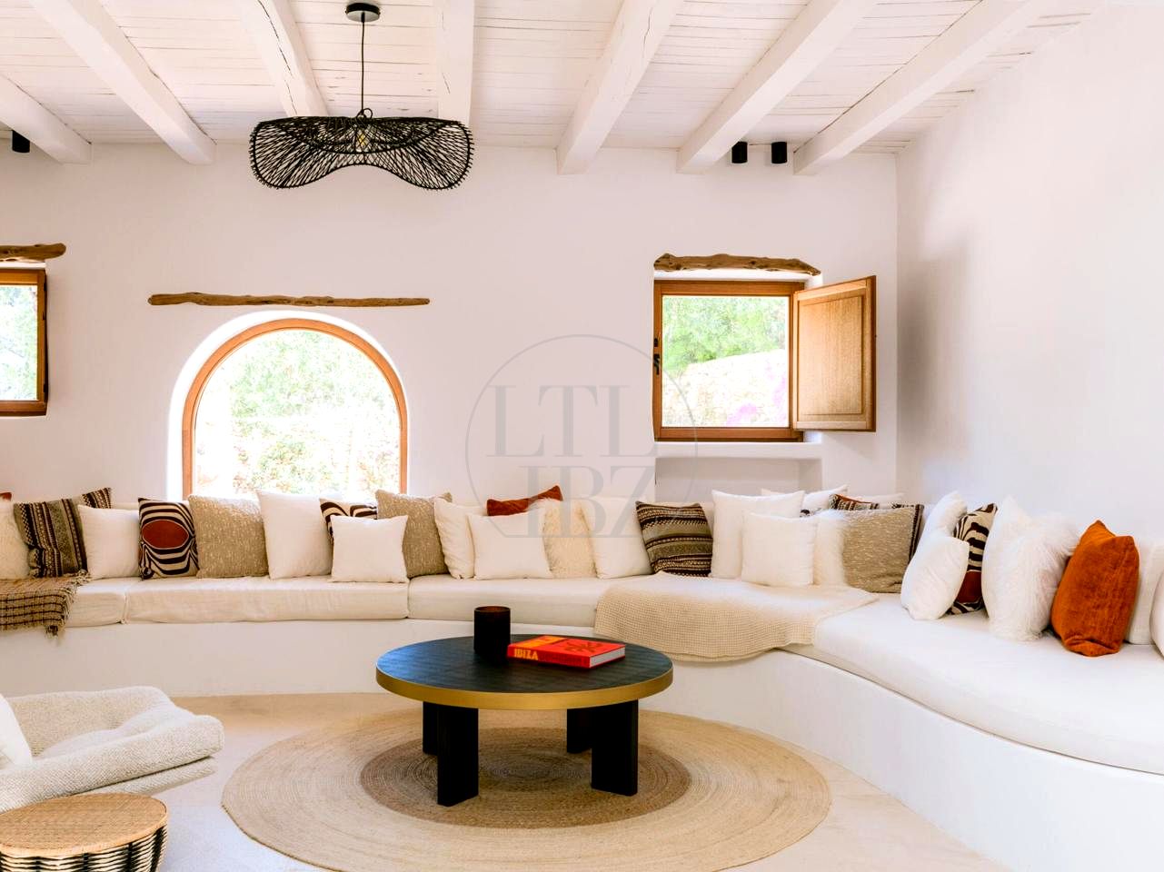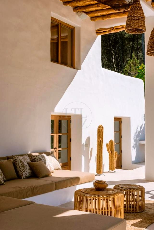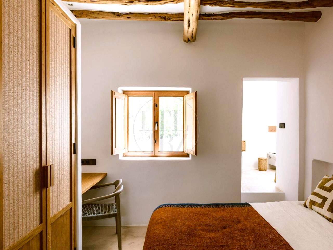 Finca de Diseño con Encanto Mediterráneo en Sa Carroca, Ibiza es una elegante propiedad renovada por Bloom Studio que combina a la perfección la arquitectura tradicional ibicenca con interiores contemporáneos y confort moderno. Situada en una amplia parcela de 8.000 m², ofrece privacidad, serenidad y vistas abiertas al entorno natural de colinas y bosques.