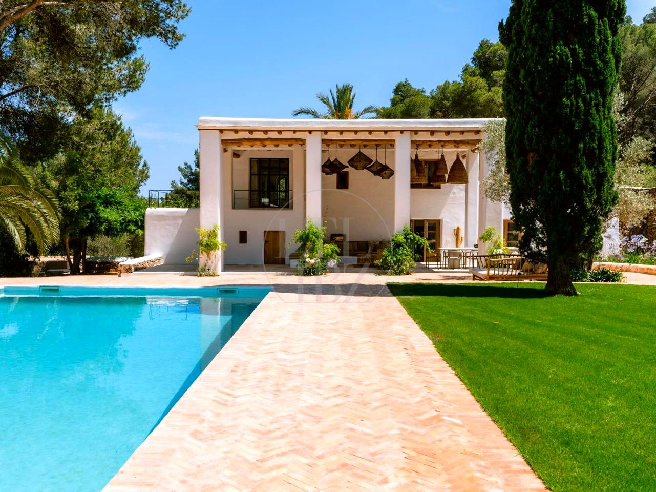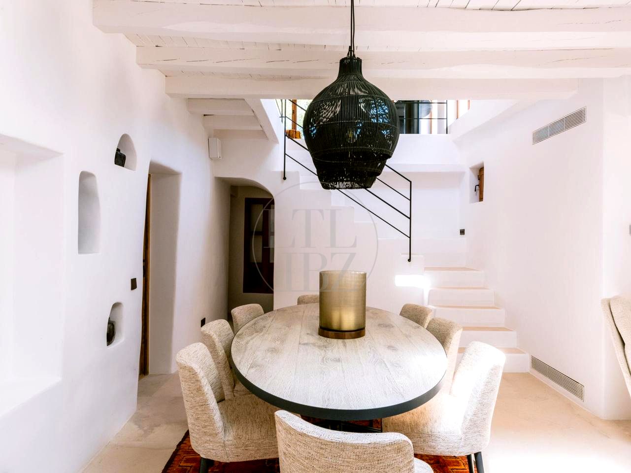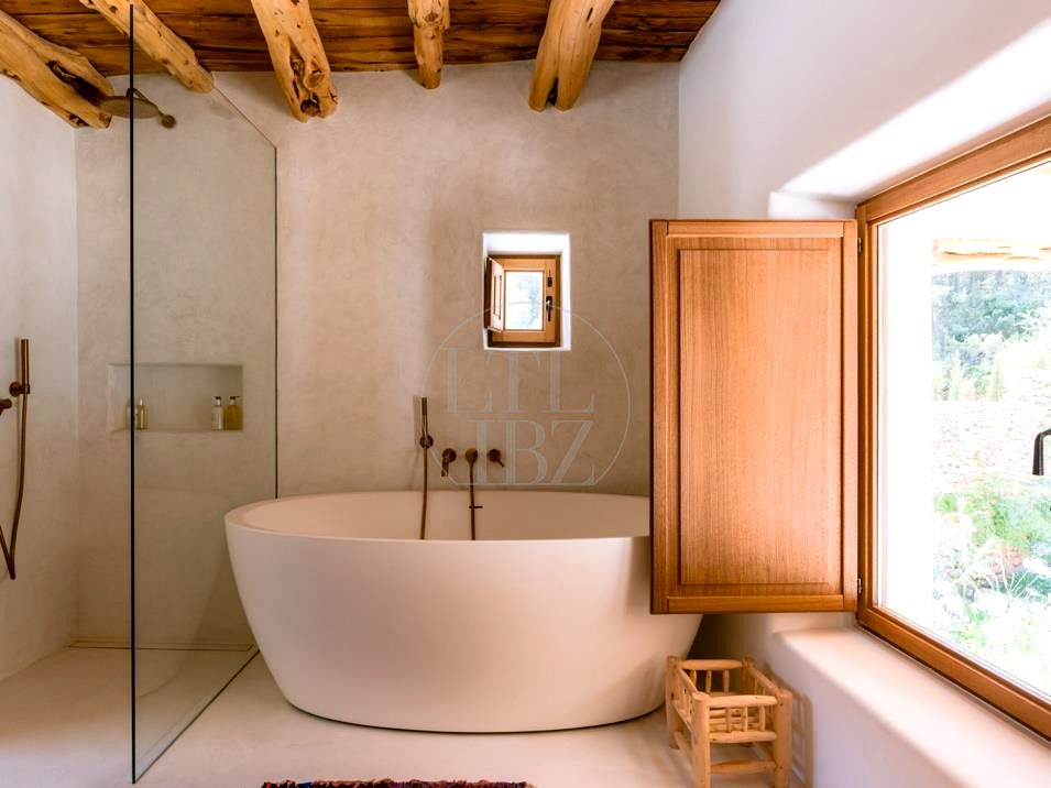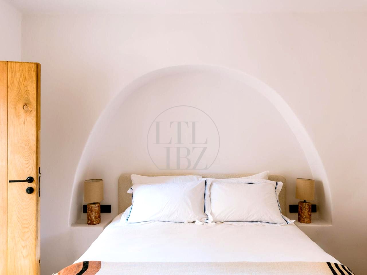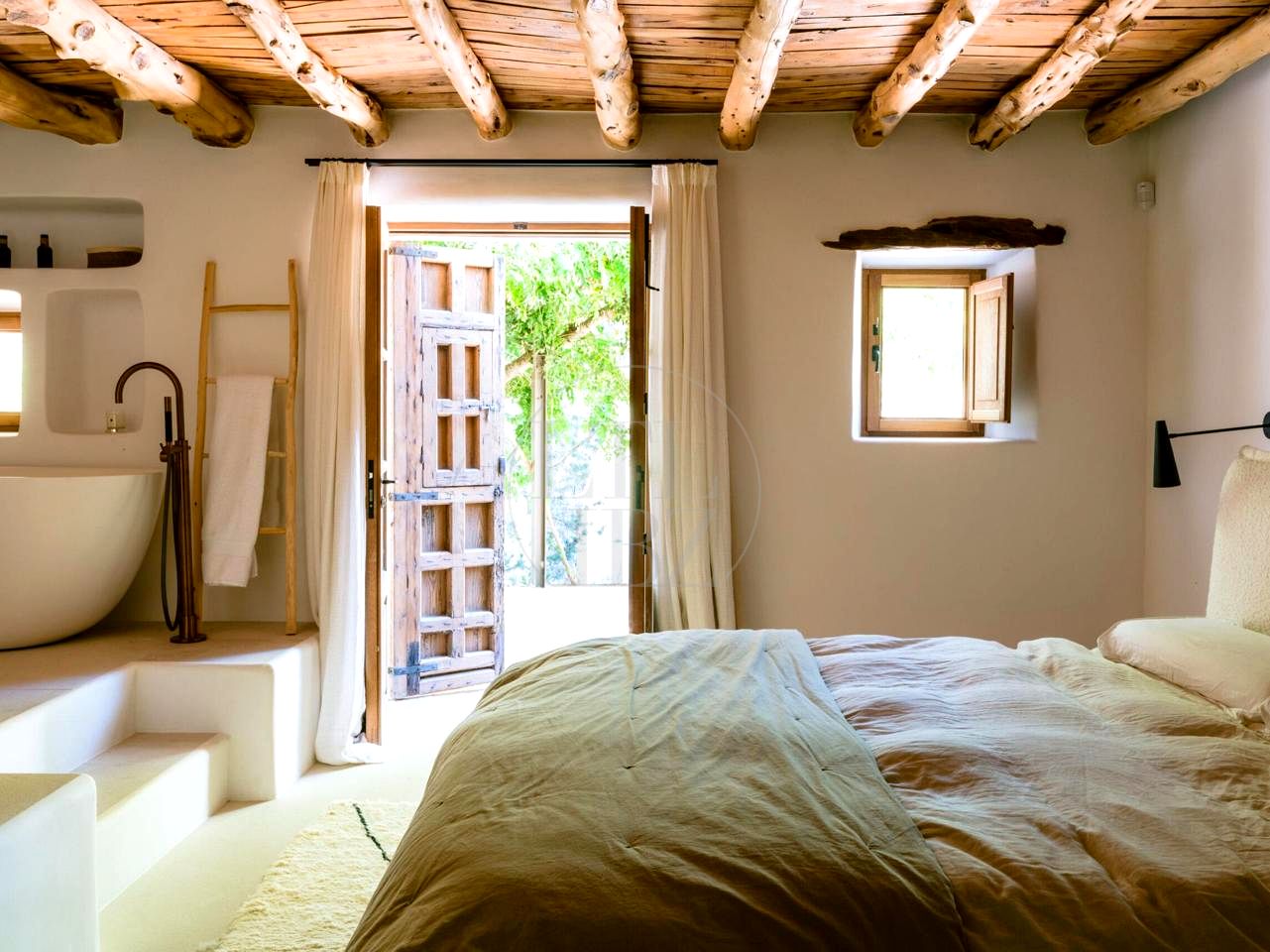 Finca de Diseño con Encanto Mediterráneo en Sa Carroca, Ibiza es una elegante propiedad renovada por Bloom Studio que combina a la perfección la arquitectura tradicional ibicenca con interiores contemporáneos y confort moderno. Situada en una amplia parcela de 8.000 m², ofrece privacidad, serenidad y vistas abiertas al entorno natural de colinas y bosques.