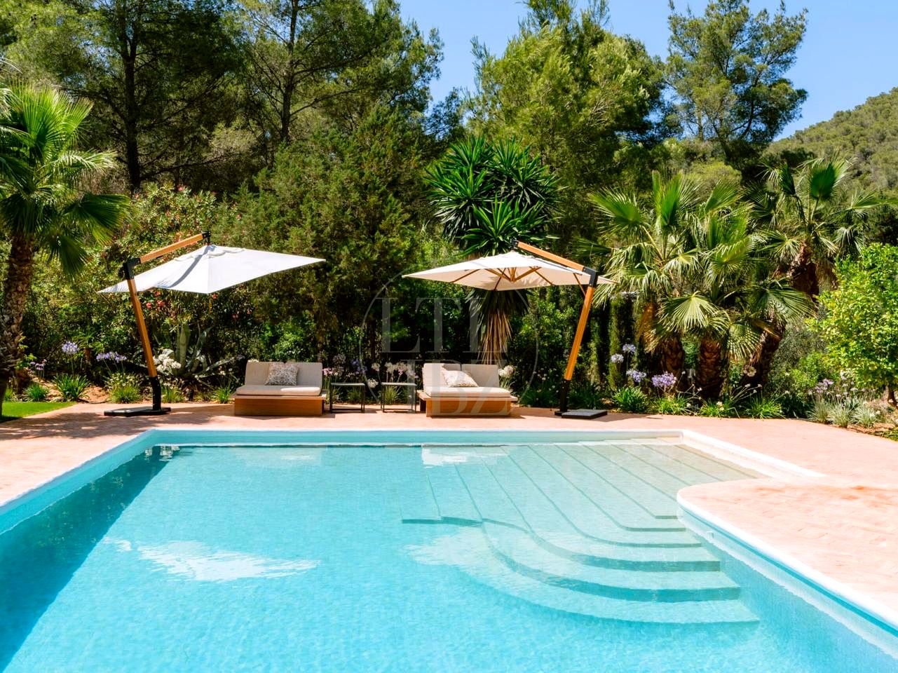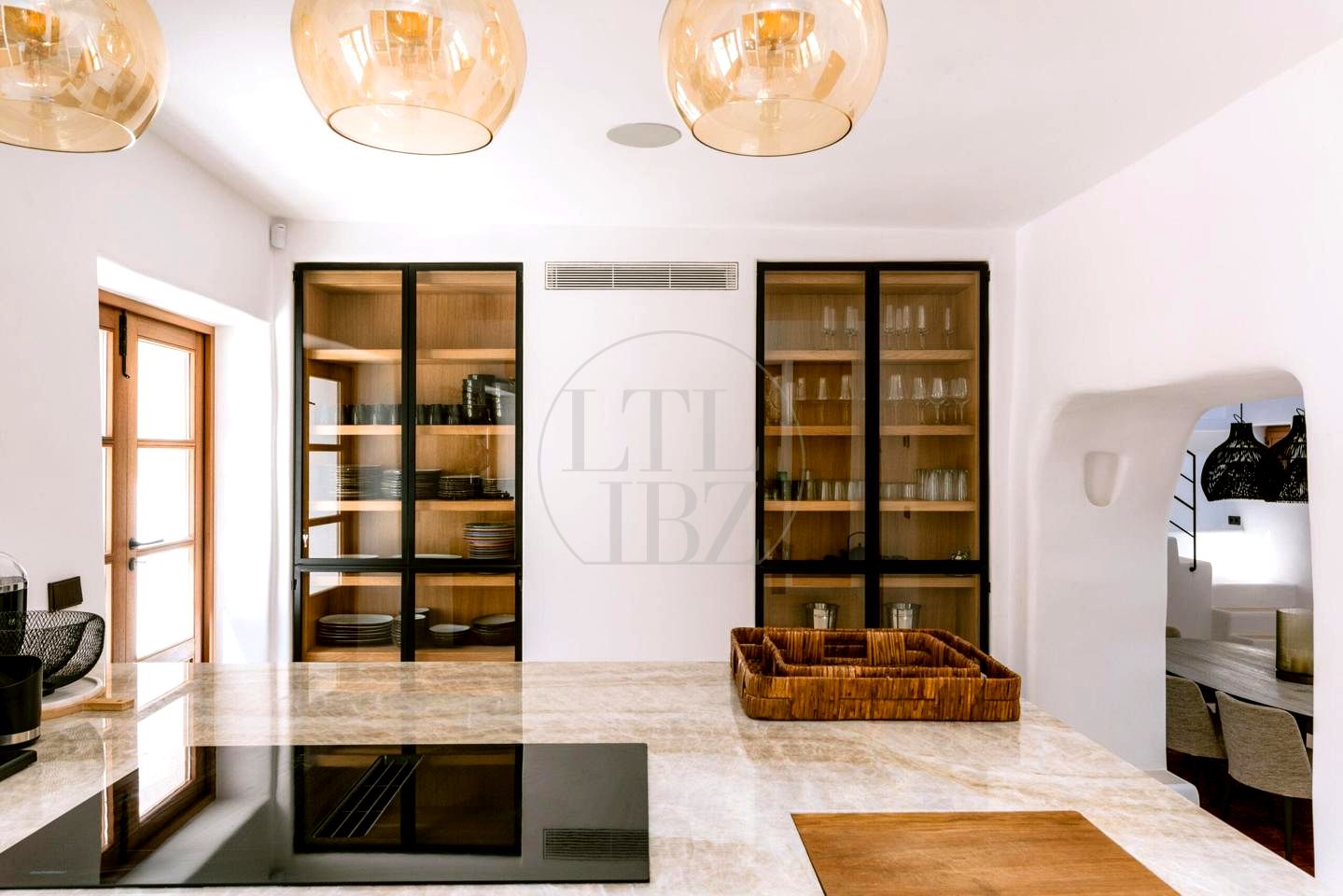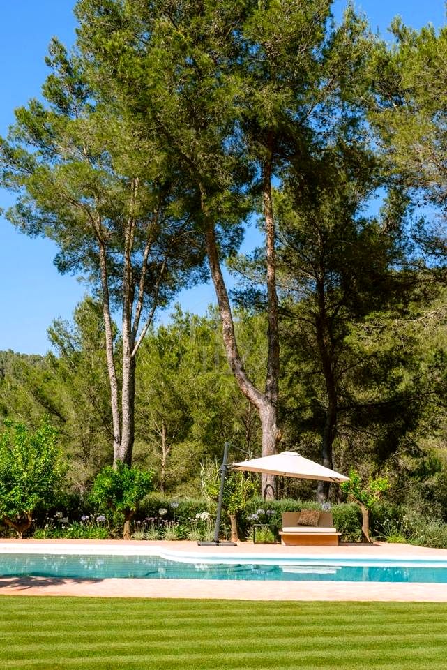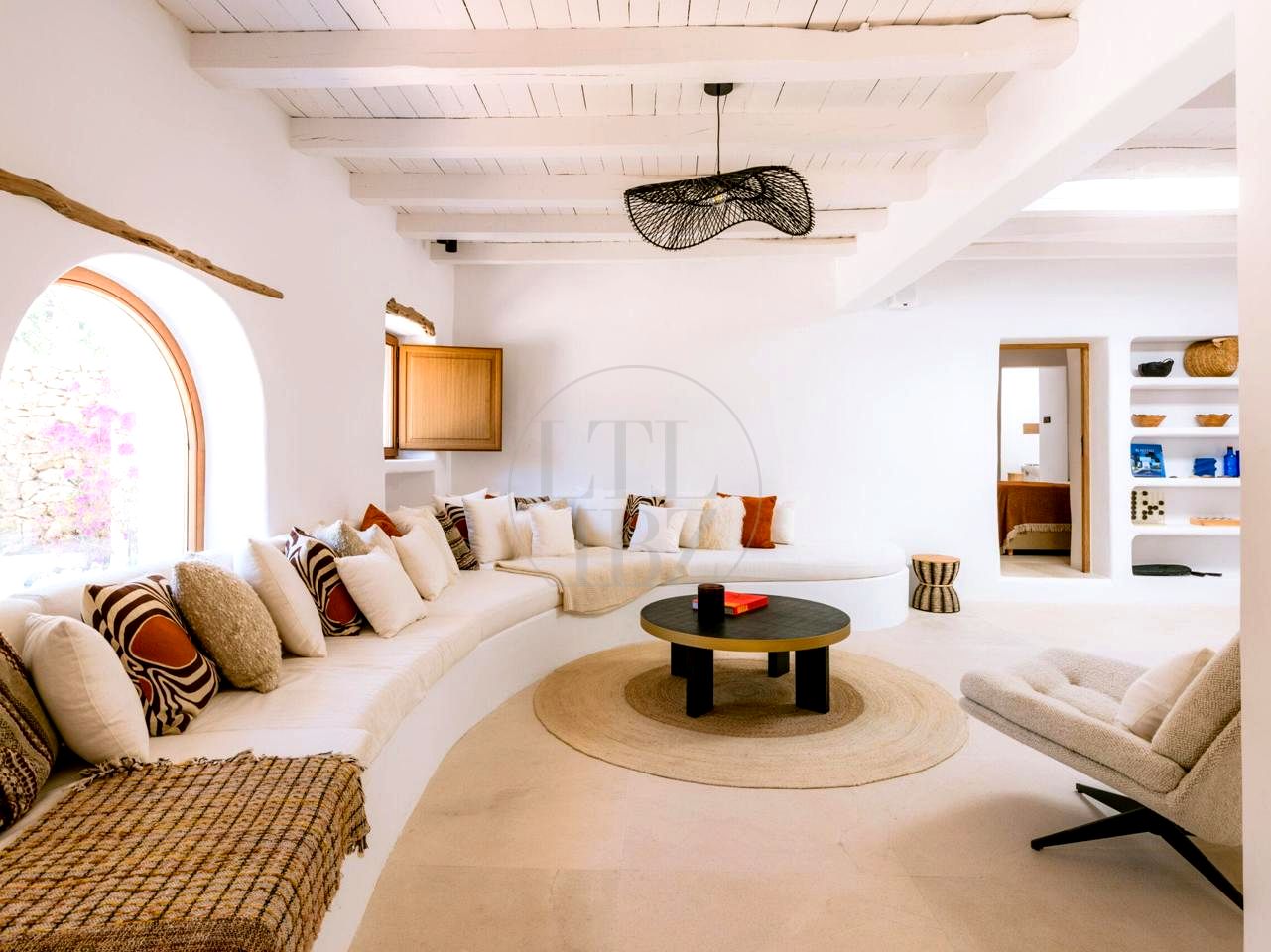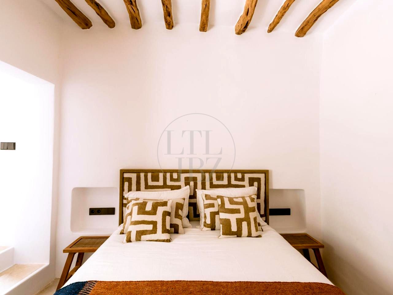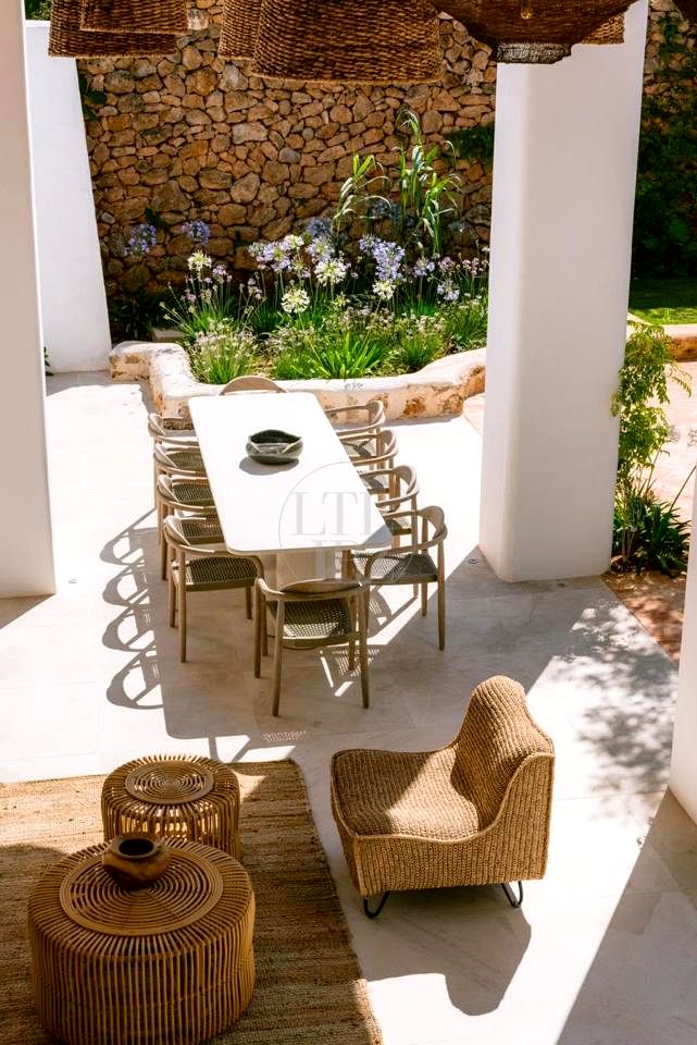 Finca de Diseño con Encanto Mediterráneo en Sa Carroca, Ibiza es una elegante propiedad renovada por Bloom Studio que combina a la perfección la arquitectura tradicional ibicenca con interiores contemporáneos y confort moderno. Situada en una amplia parcela de 8.000 m², ofrece privacidad, serenidad y vistas abiertas al entorno natural de colinas y bosques.