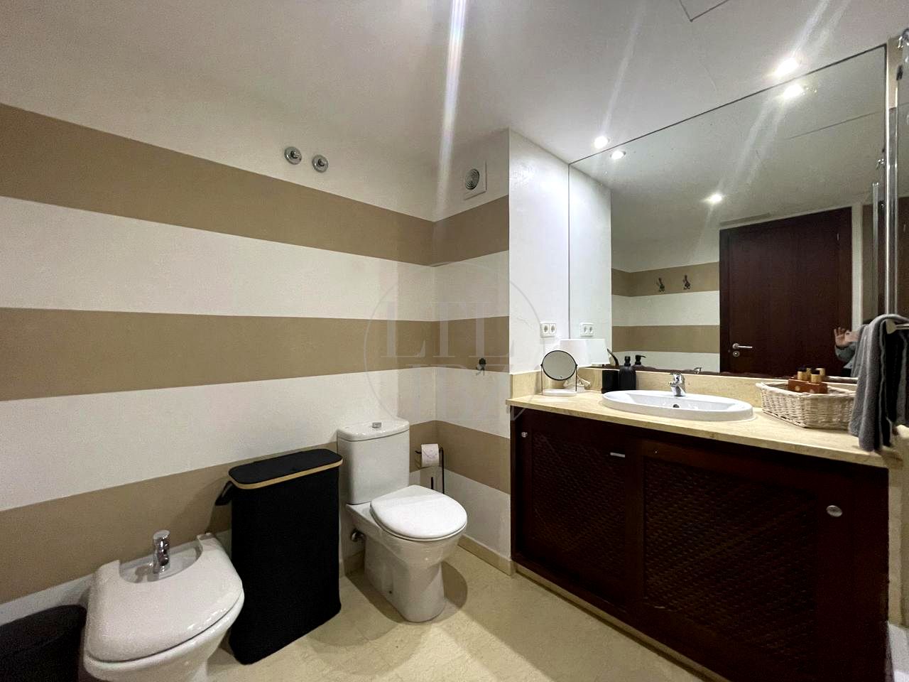 El apartamento consta de 70 m2 que están distribuidos en un acogedor y luminoso salón – comedor, cocina abierta totalmente equipada, dos baños completos, uno en suite, dos habitaciones dobles, una con armario empotrado y una encantadora terraza desde la que podrás contemplar la belleza de Isla de Formentera y donde poderse relajar en los calurosos veranos ibicencos. Esta parte de la casa es perfecta para recibir invitados gracias a sus espacios preparados y estudiados al mas mínimo detalle.