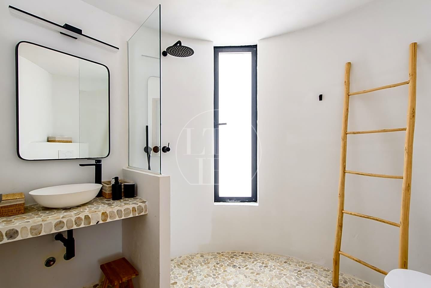 Al ascender al segundo piso, encontrará el dormitorio principal, completo con un baño en suite y un amplio vestidor. Esta habitación tiene su propia terraza privada, con zona chill out y ducha exterior.