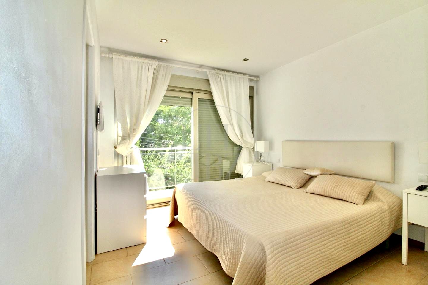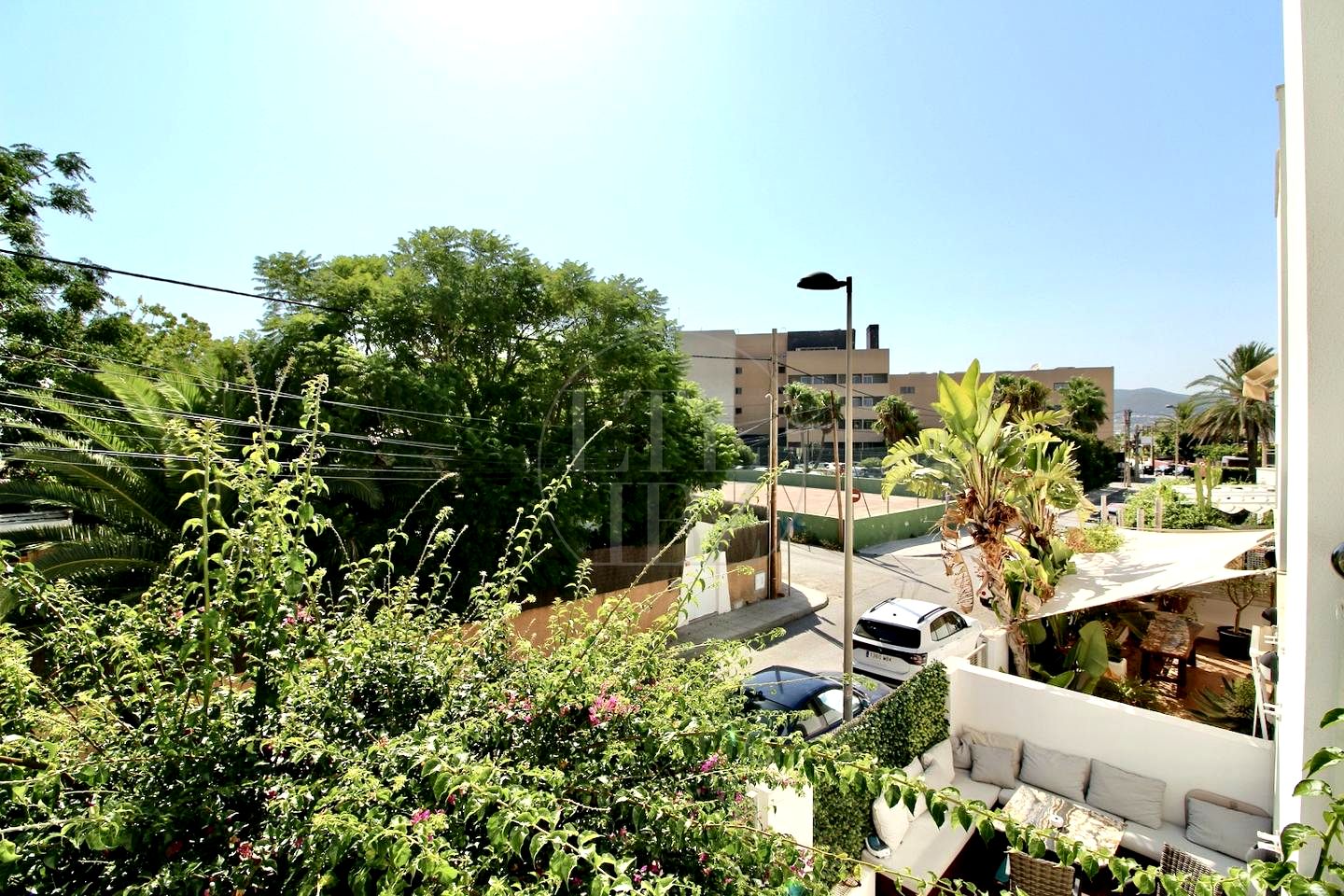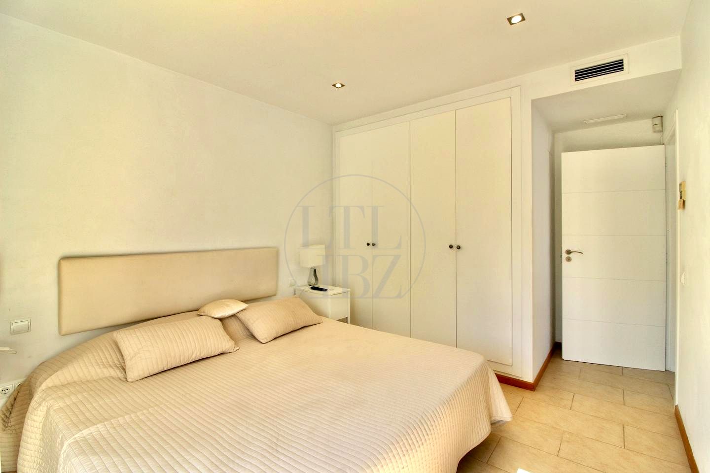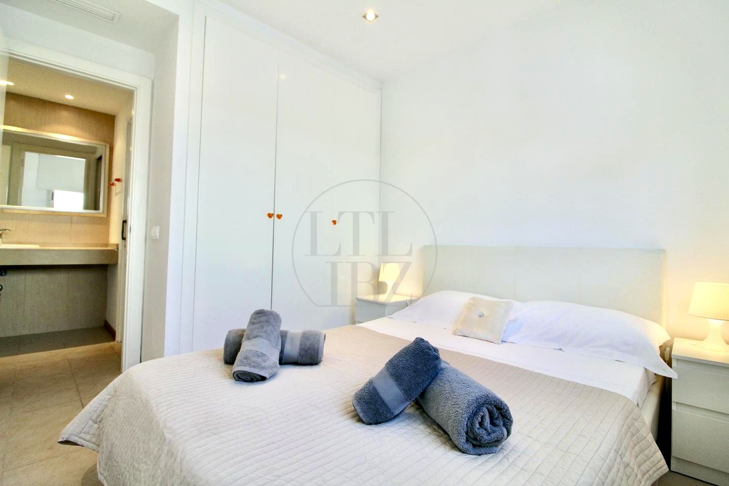 Illa Plana, una isla histórica situada al este del bullicioso puerto de Ibiza. Ahora sirve como un hito geográfico distintivo que separa el puerto de la playa de Talamanca. Esta zona disfruta de la proximidad a los lugares más elegantes y vibrantes de Ibiza, con la glamurosa Marina Botafoch a la izquierda y la playa de Talamanca a la derecha.