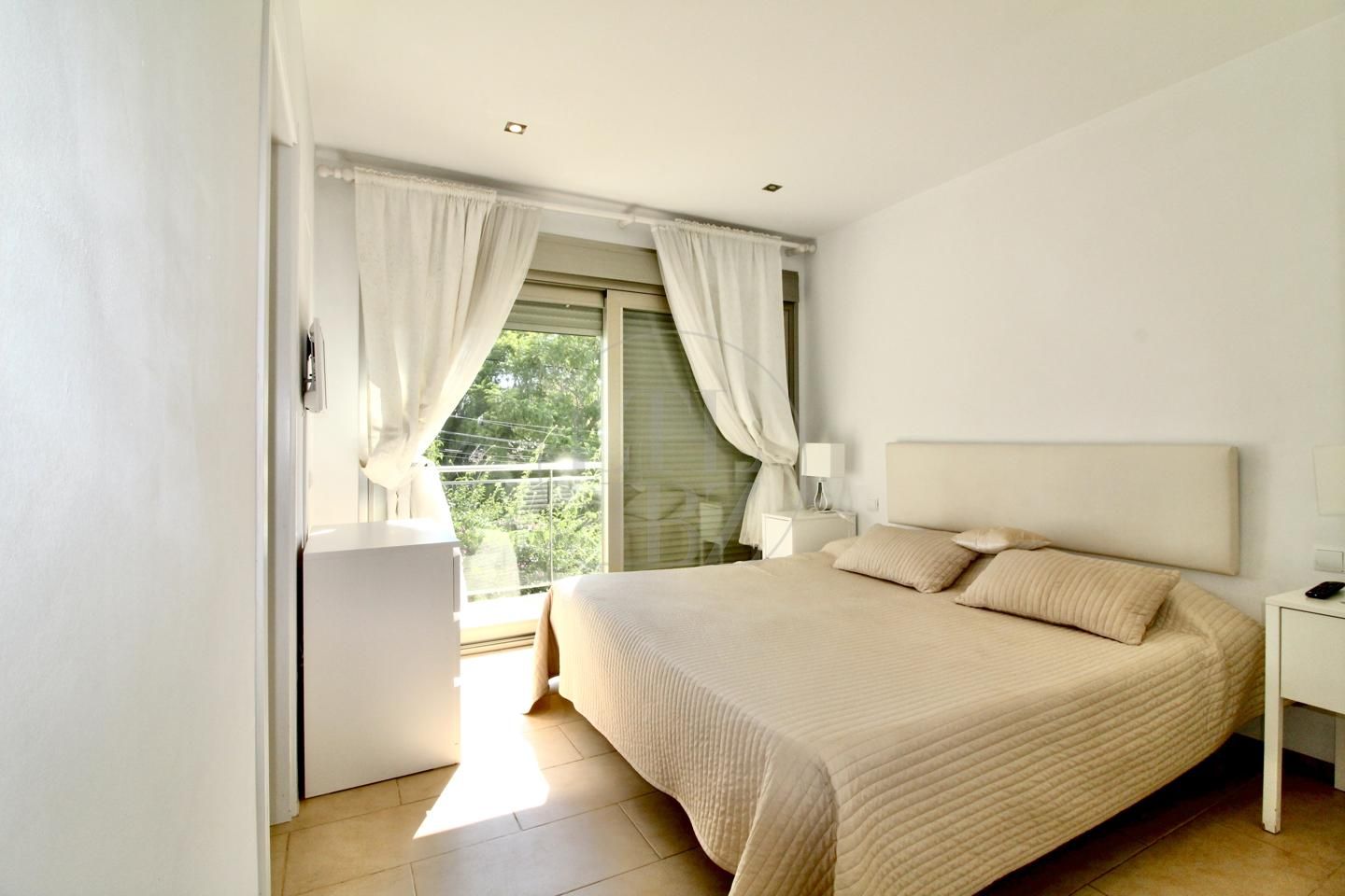Illa Plana, una isla histórica situada al este del bullicioso puerto de Ibiza. Ahora sirve como un hito geográfico distintivo que separa el puerto de la playa de Talamanca. Esta zona disfruta de la proximidad a los lugares más elegantes y vibrantes de Ibiza, con la glamurosa Marina Botafoch a la izquierda y la playa de Talamanca a la derecha