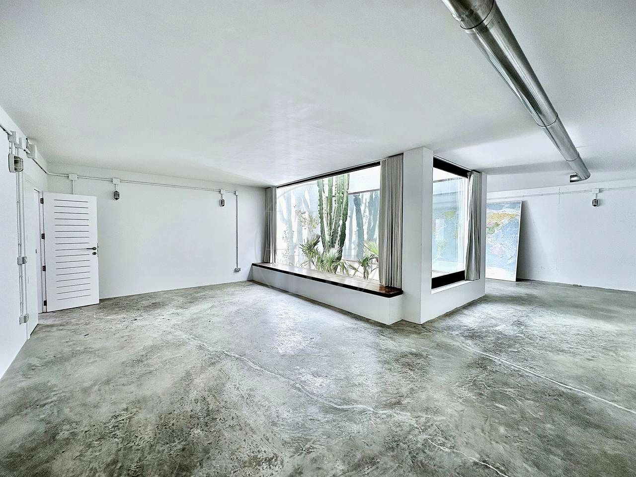 The lower level houses a large multipurpose room, guest toilet, and a closed garage with space for multiple vehicles. This area offers great flexibility for use as a recreational space, storage, or work area.