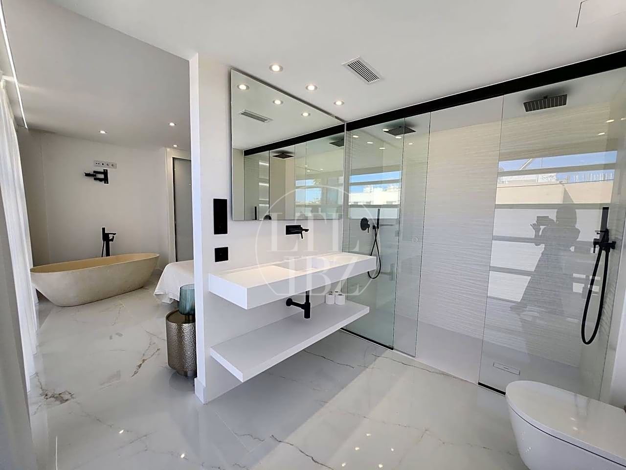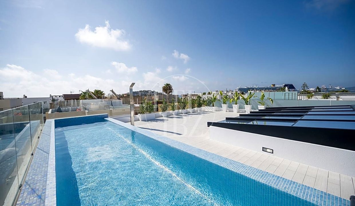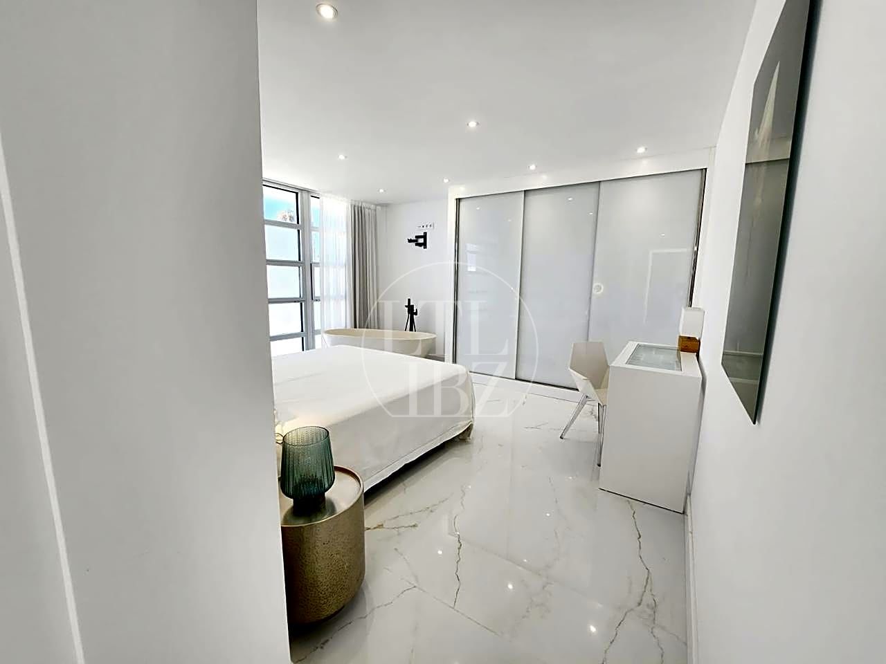 Luxurious Apartment with Rooftop Pool in Illa Plana. It is graced with abundant natural light thanks to the expansive windows and enhanced by LED illumination.