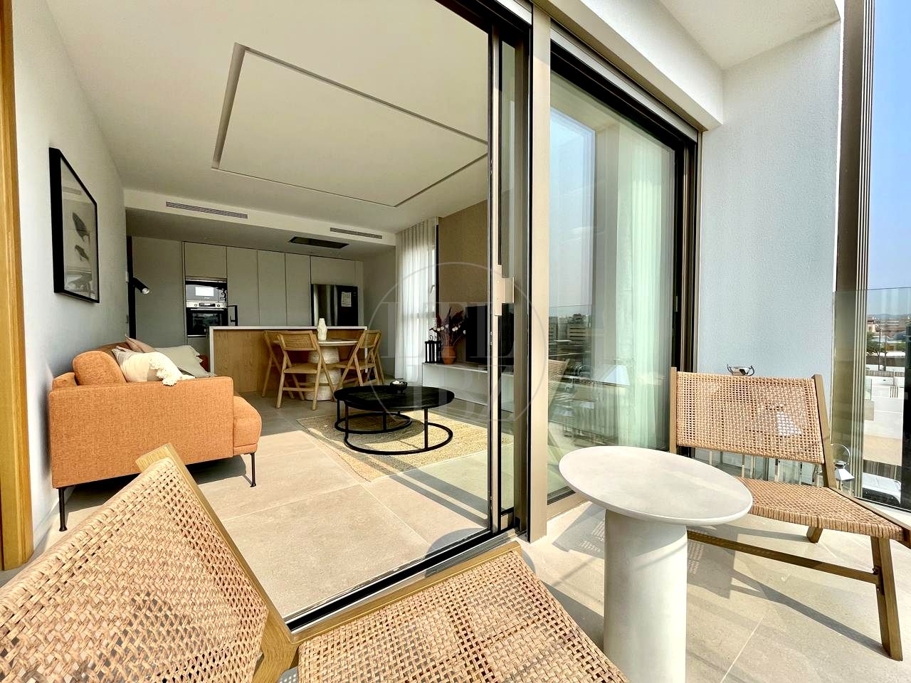 The property offers 95 m² of built area, distributed in a smart layout. It features a bright living-dining room with direct access to an east-facing balcony, a fully equipped open-plan kitchen, three bedrooms, and two bathrooms, one of them en suite. On the rooftop, exclusively for this penthouse, a 61 m² private terrace with independent access creates the perfect setting for outdoor leisure, dining, and relaxation.