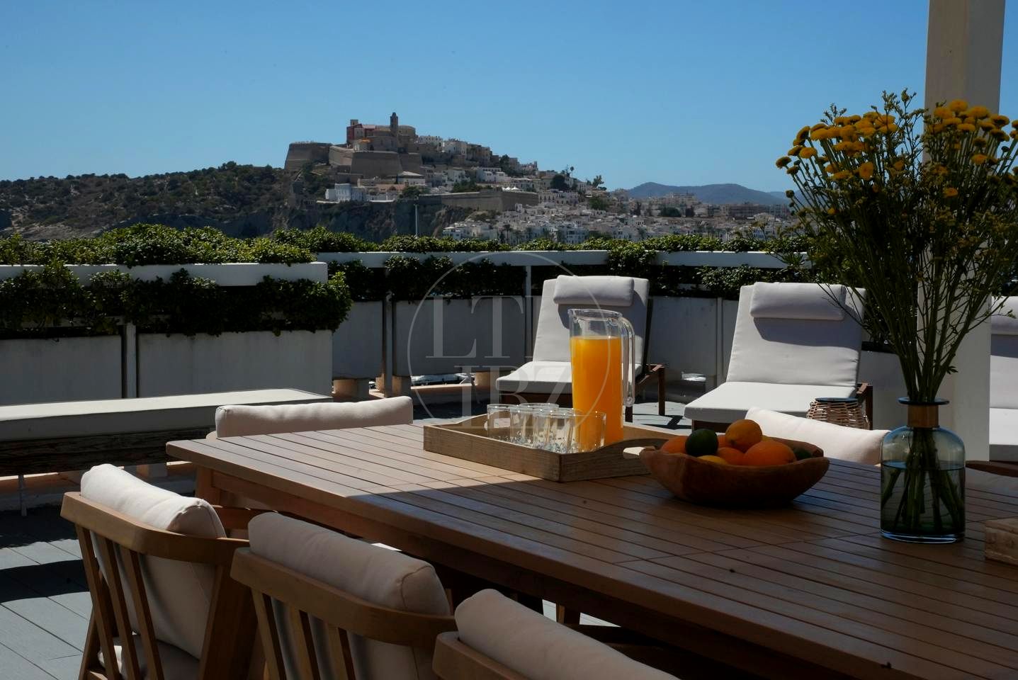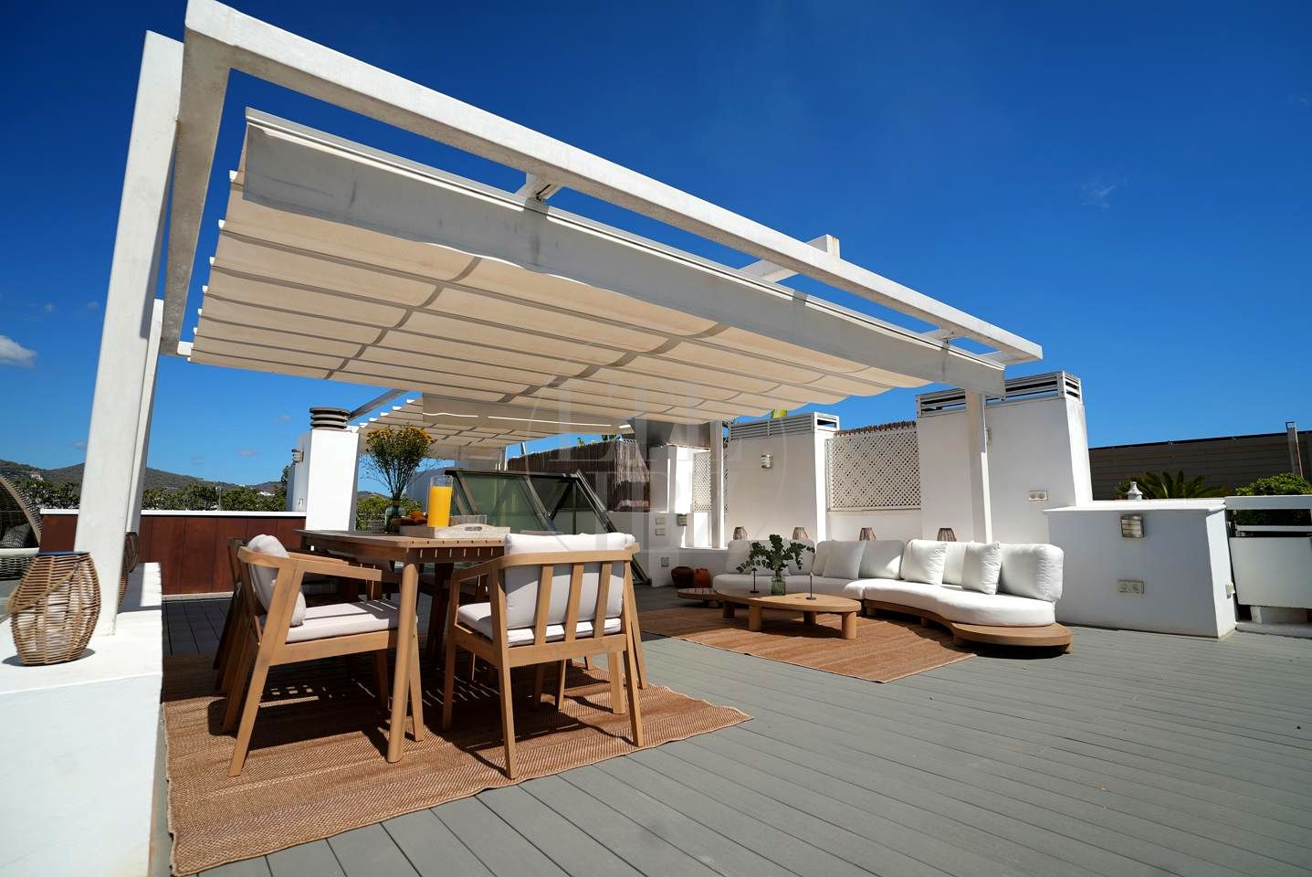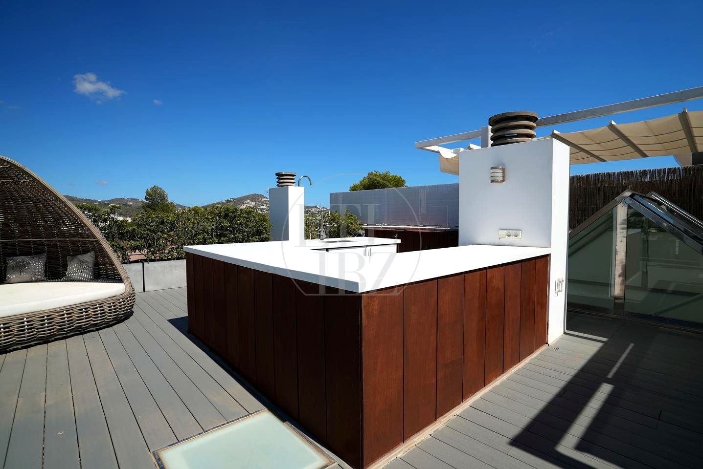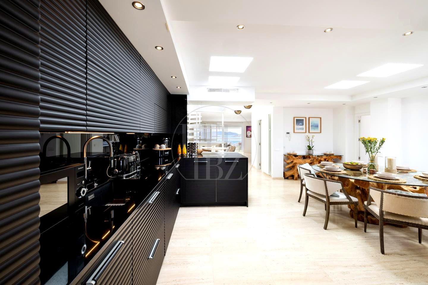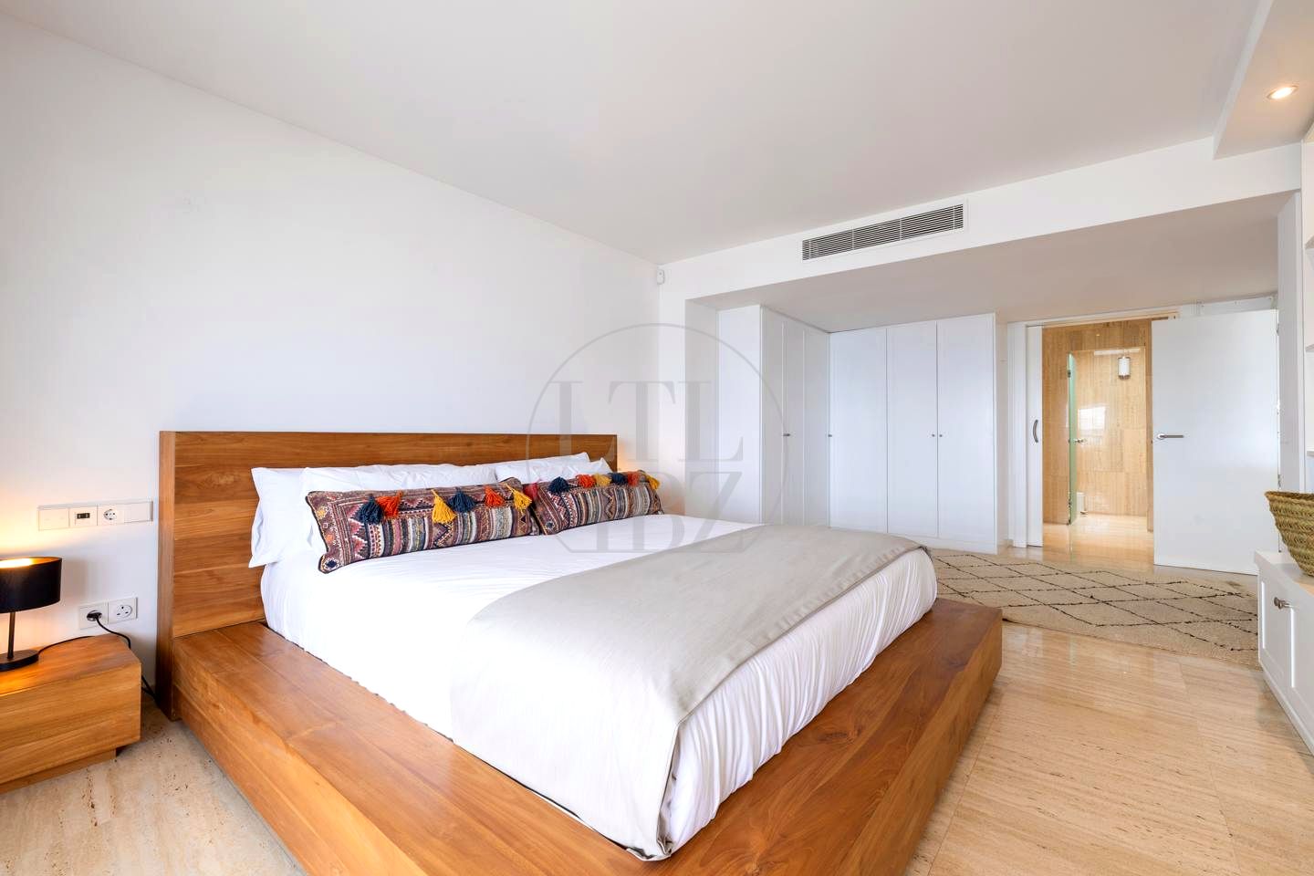 Penthouse with Panoramic Sea Views and Private Rooftop in S’Illa Plana, Ibiza offers an exceptional opportunity to acquire a contemporary residence in one of the island’s most exclusive coastal areas. The property enjoys a privileged position between Marina Botafoch and Talamanca, boasting breathtaking views over the harbour, the Mediterranean Sea, and Dalt Vila.