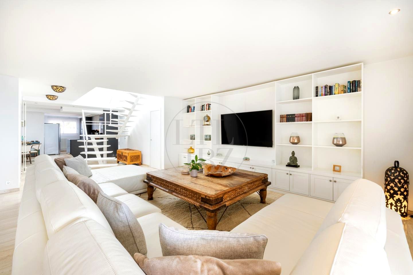 An internal spiral staircase leads to the spectacular rooftop of over 190 m², designed as an oasis of relaxation with a chill-out lounge, dining area, summer kitchen, jacuzzi, and sunbathing space surrounded by lush greenery and total privacy.
