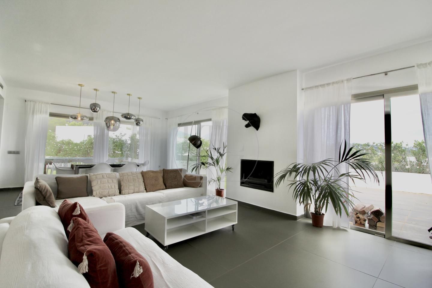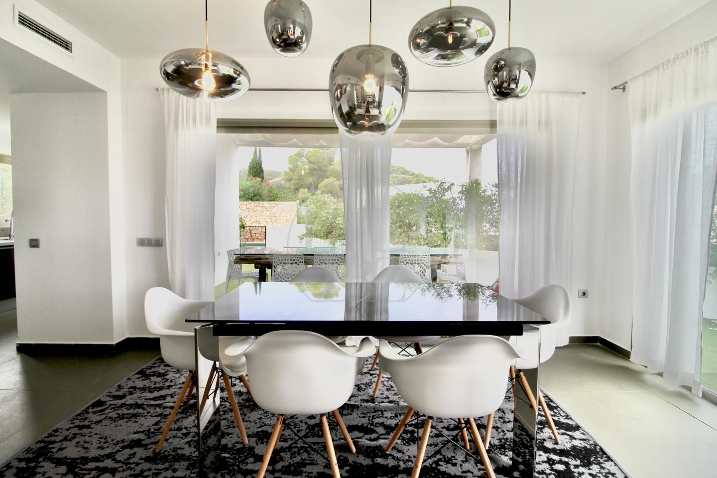 Roca Llisa is one of the most secure and tranquil residential areas in Ibiza, known for its privacy and natural surroundings. Situated next to the island’s golf course and surrounded by pine forests, the property enjoys a peaceful environment while still offering excellent connections to Ibiza Town, Santa Eulalia, and several nearby beaches. An ideal location for those seeking tranquility without isolation.