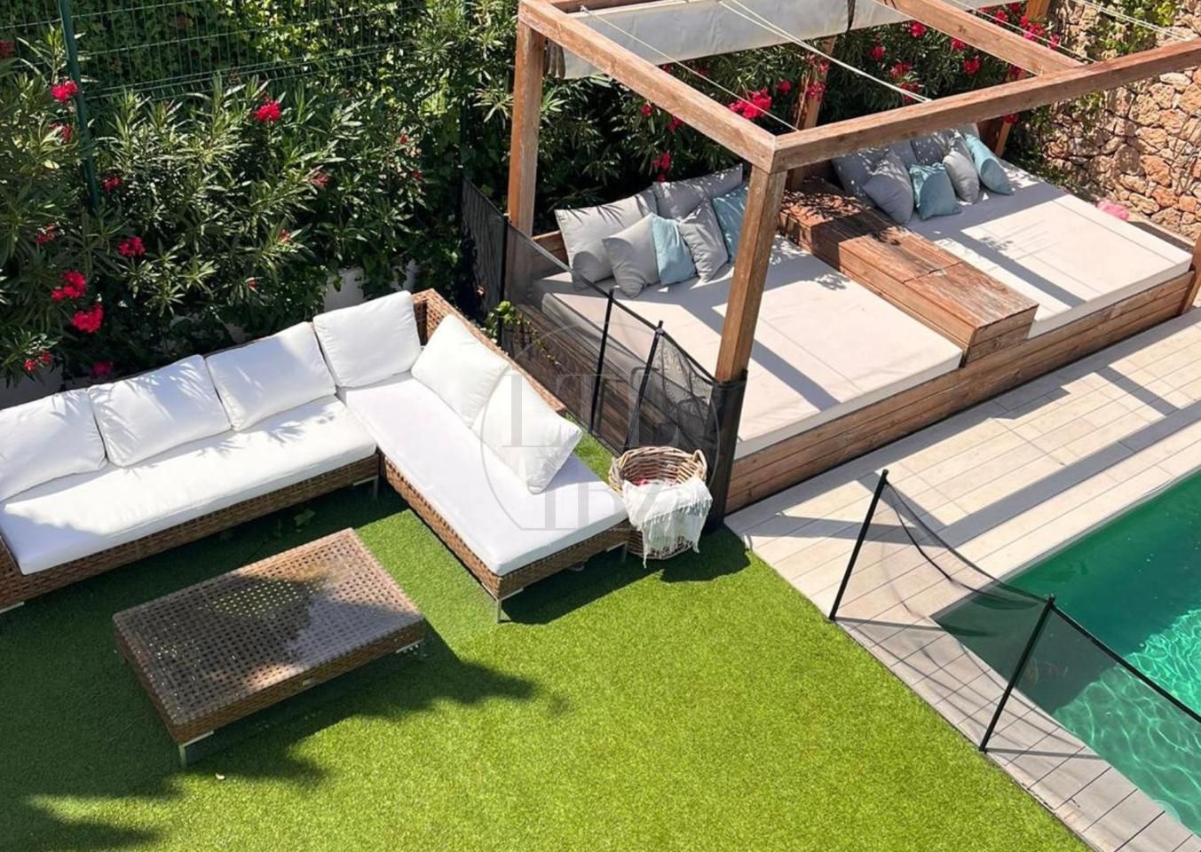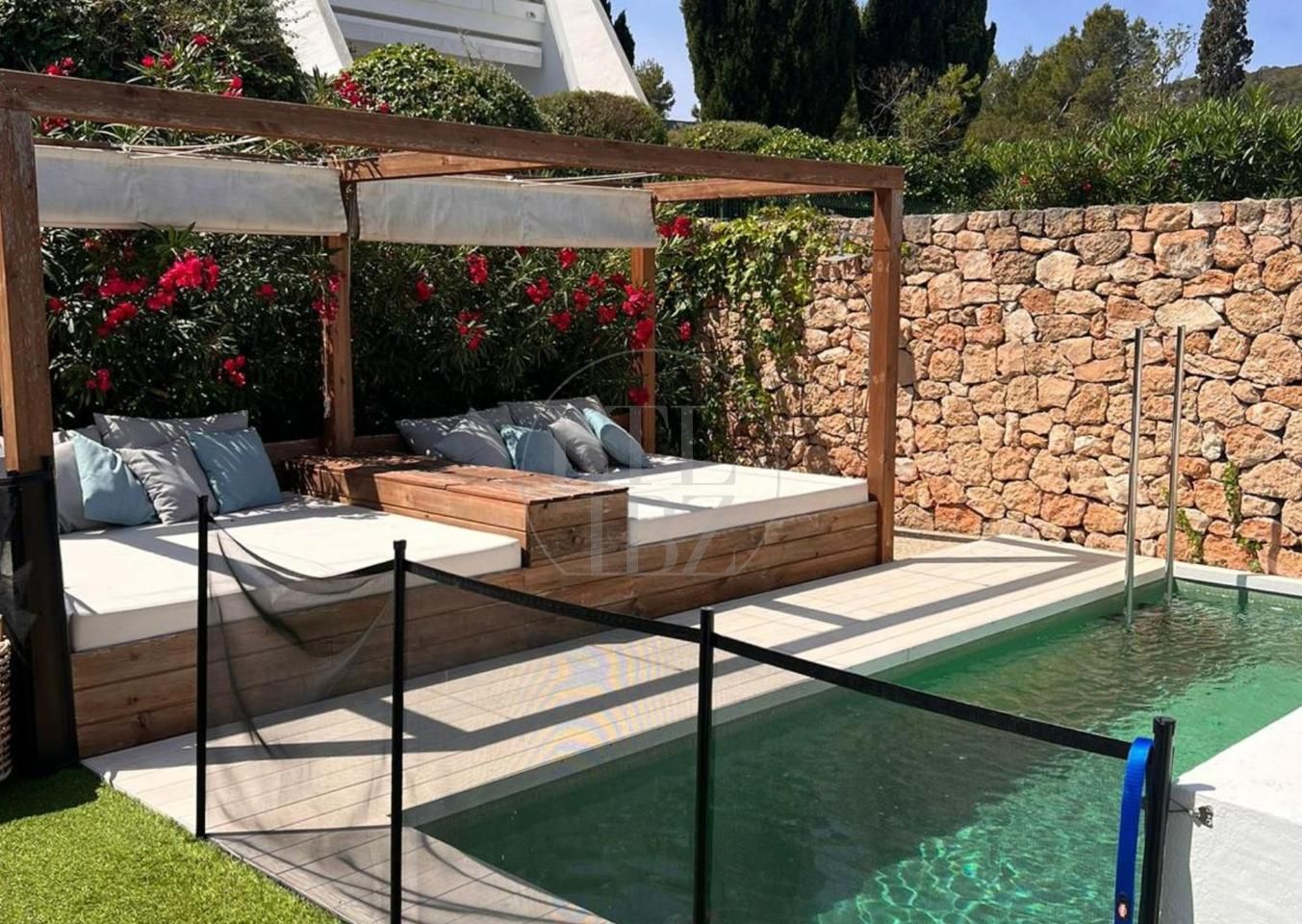 La propiedad dispone de piscina privada, cama balinesa hecha a medida y una agradable zona cubierta con pérgola y barbacoa. El exterior es de fácil mantenimiento y está diseñado para disfrutar tanto del sol como de zonas de sombra durante todo el día.