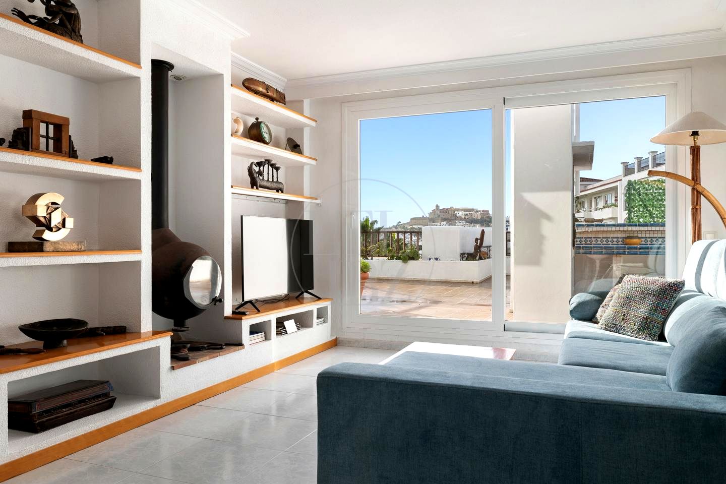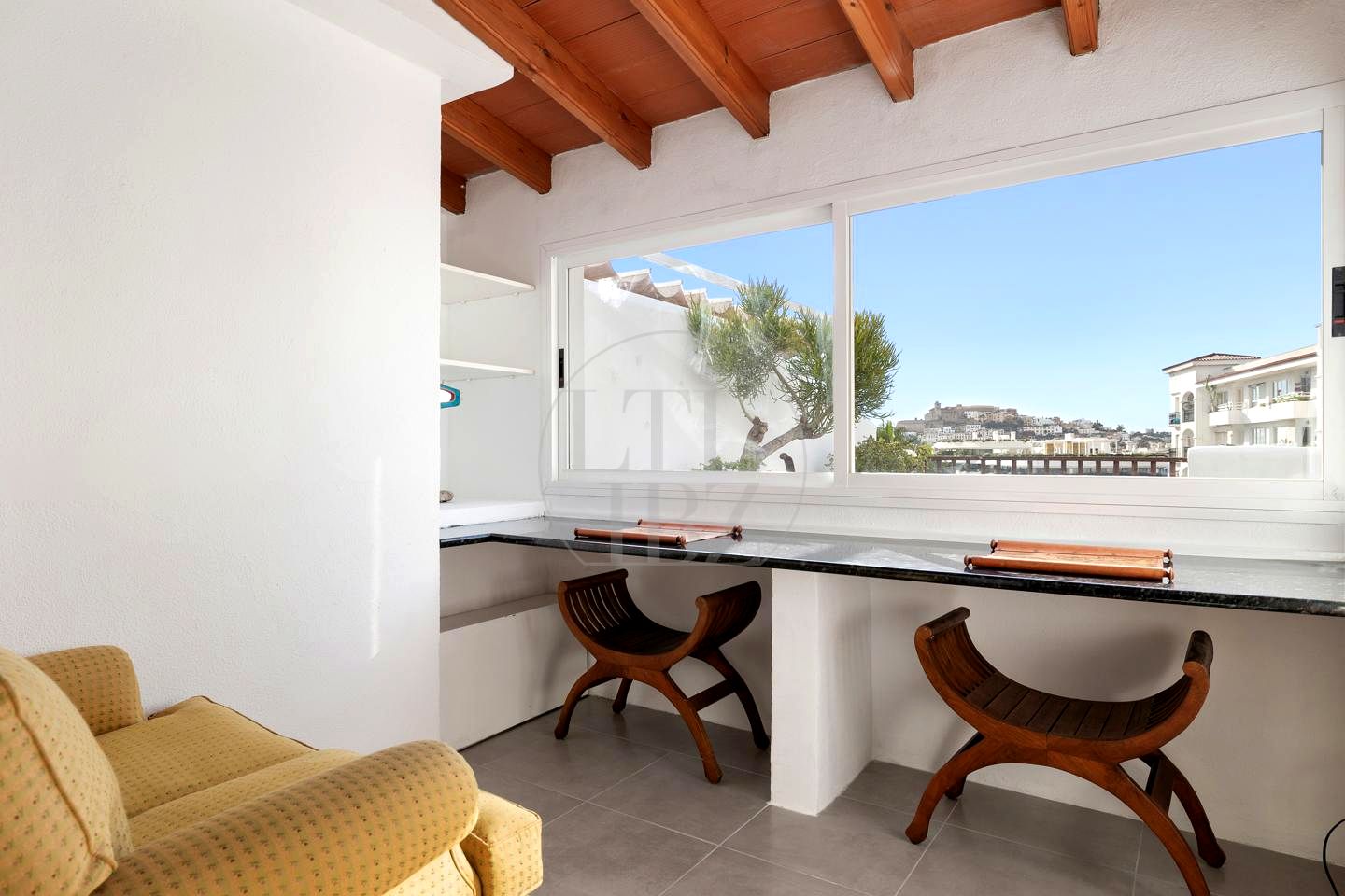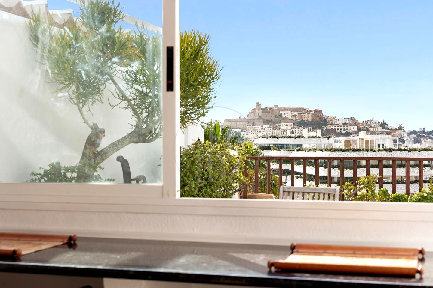 The apartment is located in the heart of one of the most competitive and best connected area of the island, with extraordinary views of the historic center of Dalt Vila, a short distance from Lio, Pacha, Casino, Calma, Cappuccino and many others, high fashion, boutiques and the new Leisure port of Marina Botafoch.