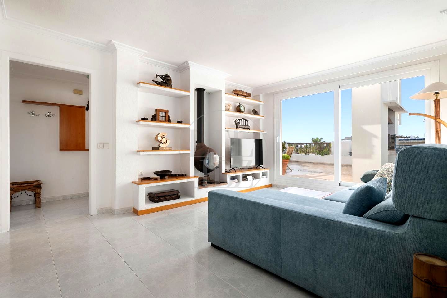 The wonderful penthouse is located on the top floor of a building in the Marina de Botafoch area that has a beautiful garden area, tennis court and community pool.